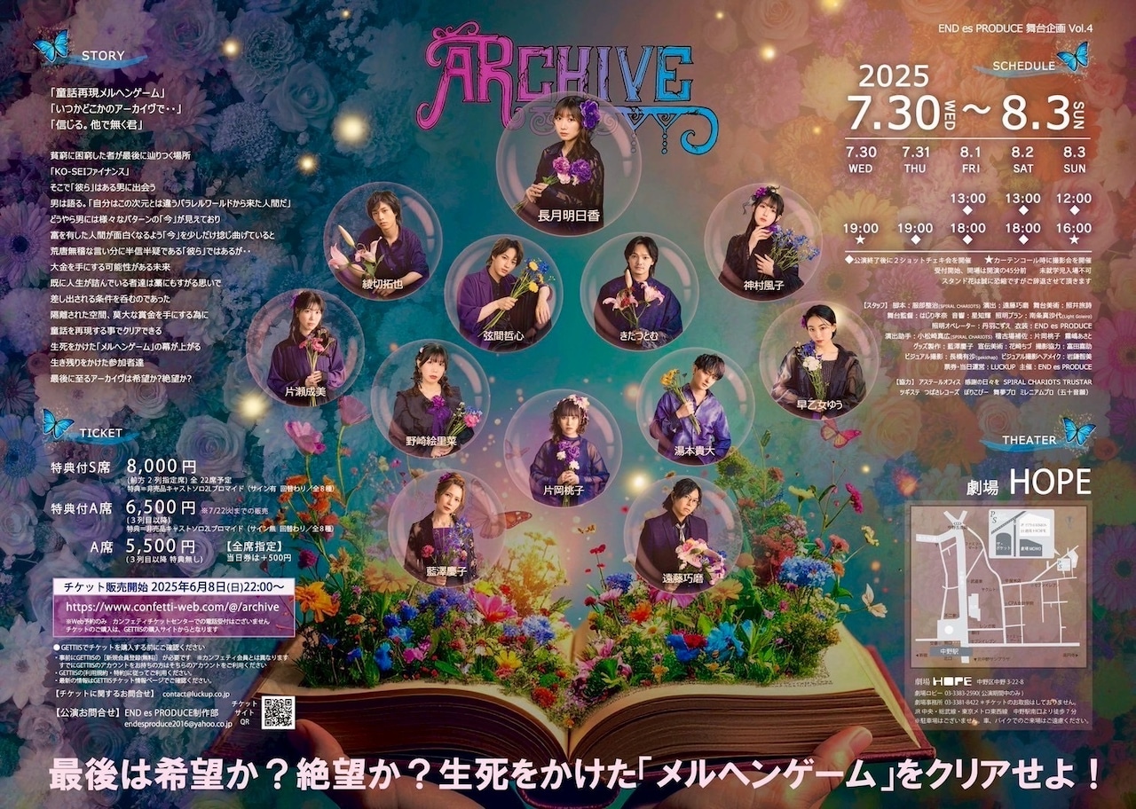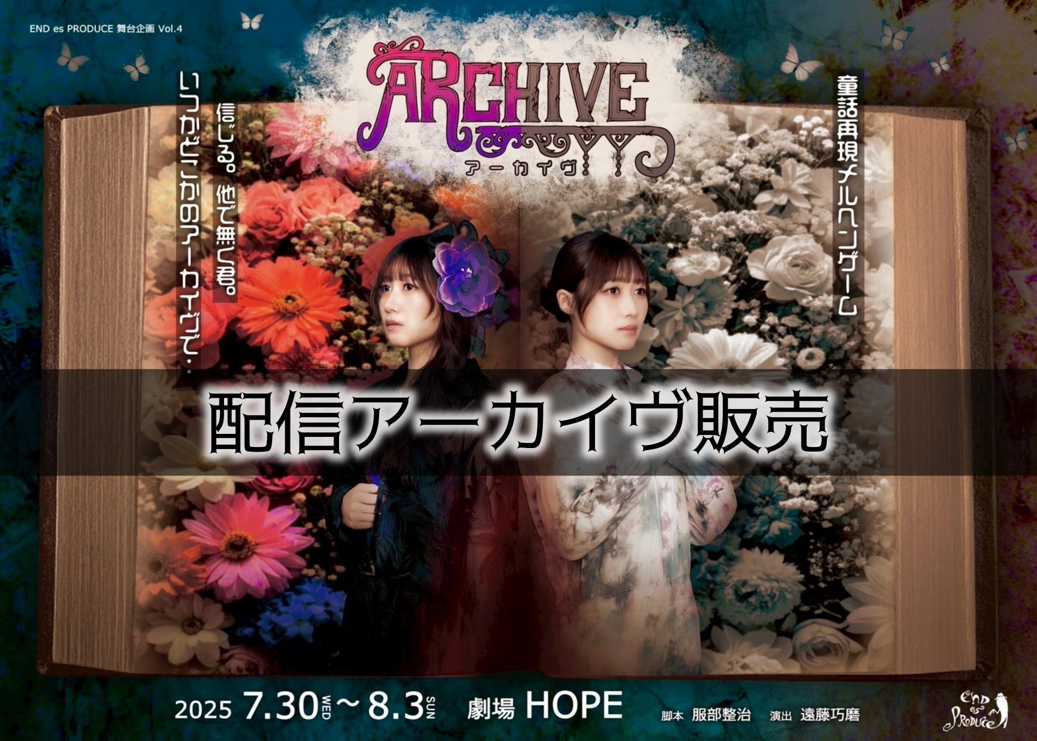 7/30~8/3まで劇場HOPEにて公演したEND es PRODUCE舞台企画、第4弾『ARCHIVE』の配信アーカイヴ販売フォームです。3台のカメラで撮影した映像を編集したものを、後日URLをお送りする形となります。